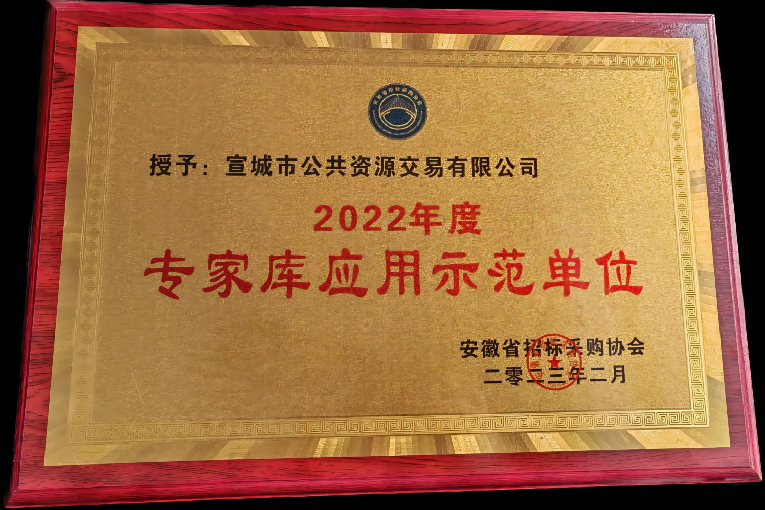 宣城市公共資源交易有限公司榮獲2022年度專家?guī)鞈?yīng)用示范單位