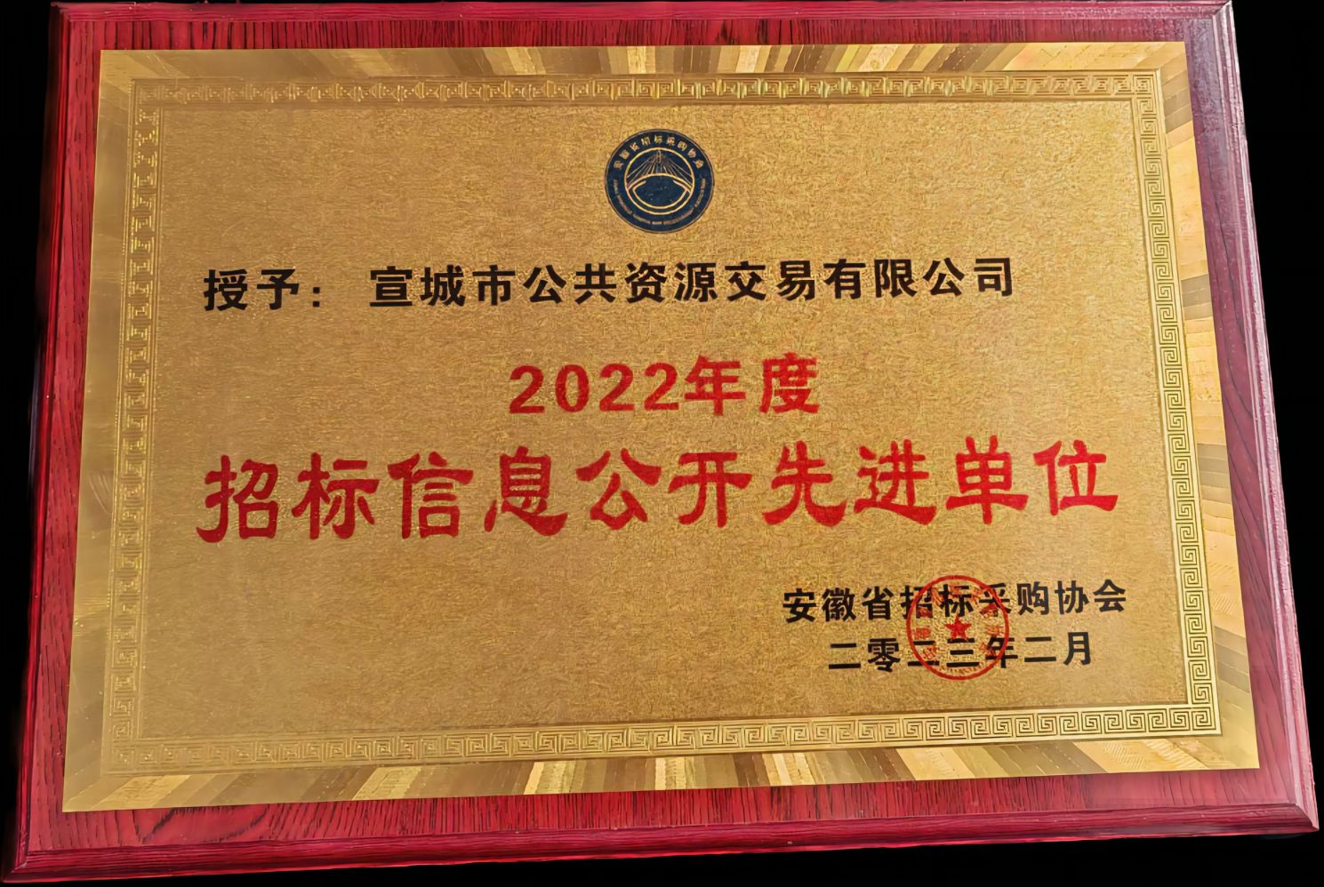 宣城市公共資源交易有限公司榮獲2022年度招標信息公開先進單位
